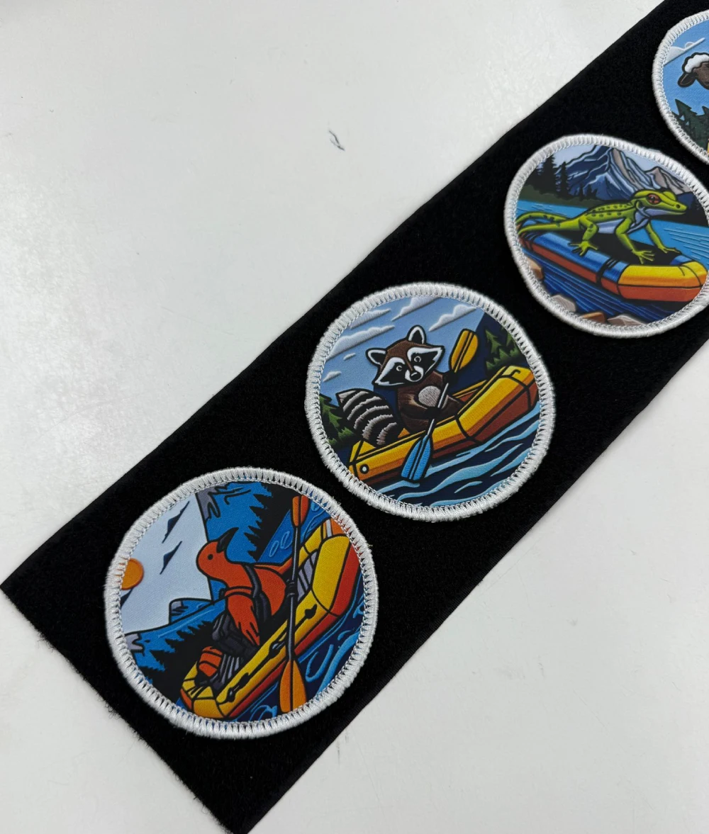 Onze geprinte patch wordt een beetje anders opgebouwd dan een volledig geborduurde patch op de borduurmachine. In tegenstelling tot geborduurde patches, wordt er een basisstof gebruikt als drager, waarop we de geprinte afbeelding plakken. Nadat we de print hebben aangebracht op de stof, wordt deze zorgvuldig uitgeknipt, en zal de rand afwerking gedaan worden op de borduurmachine.